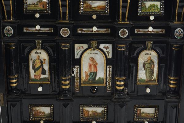 Stipo monetiere in legno ebanizzato, dorato e madreperla