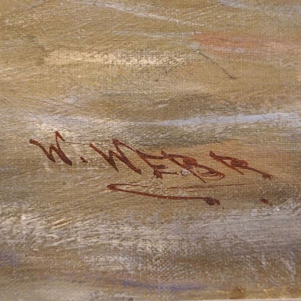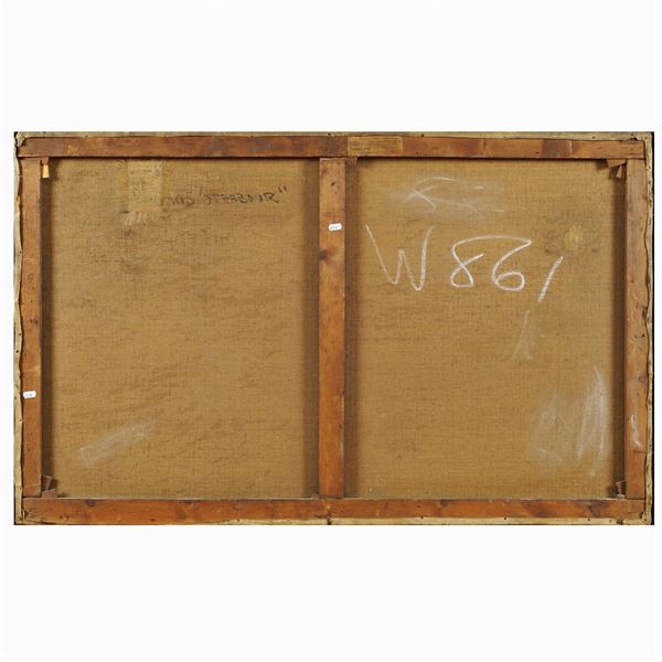 77x127 cm."Douglas Harbour", olio su tela, firmato in basso a destra, titolato sul retro, entro cornice
