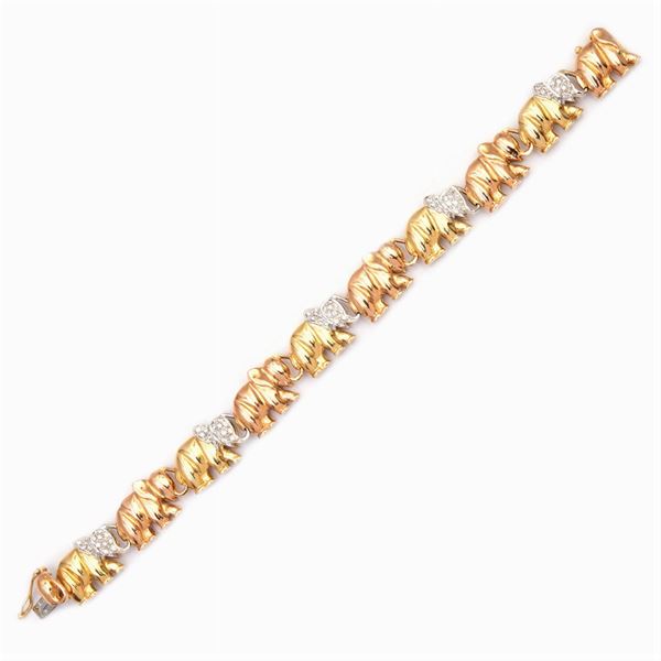 Bracciale elefanti in oro a tre colori 18kt e diamanti