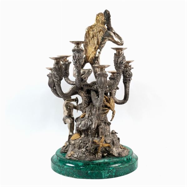 73x48 cm.orafo Fiorentini, Milano, poggiante su base circolare in malachite, peso netto 18000 gr.
