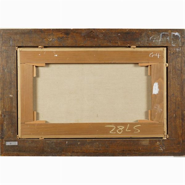 52x86 cm."Glorificazione della Vergine", olio su tela, entro cornice in legno ebanizzato e dorato