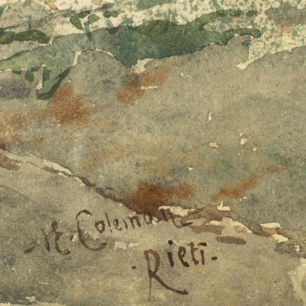 29x43 cm."Rieti", acquerello su carta, firmato e titolato in basso a destra, entro cornice