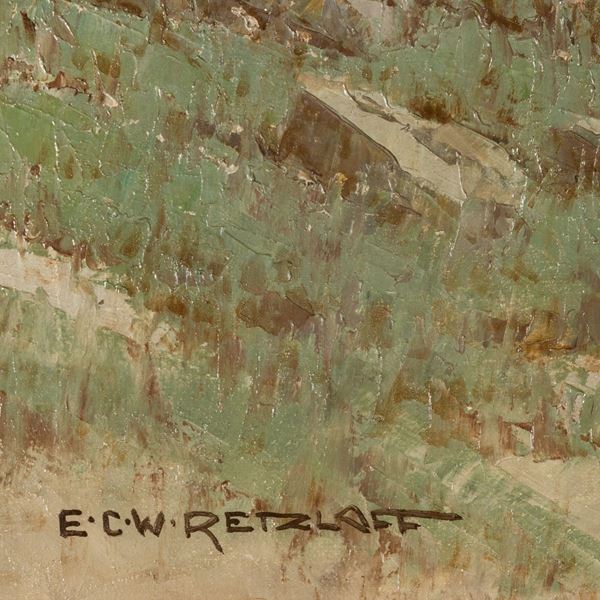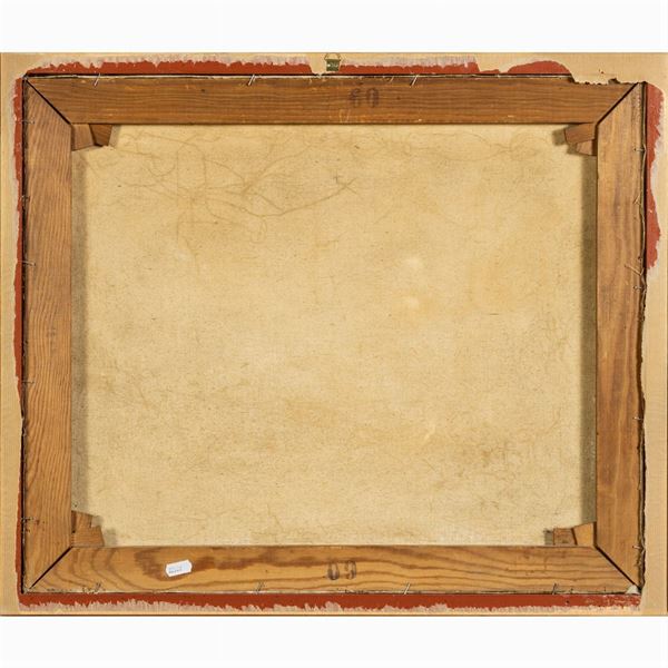 50x60 cm."Paesaggio Alpino", olio su tela, firmato in basso a sinistra, entro cornice