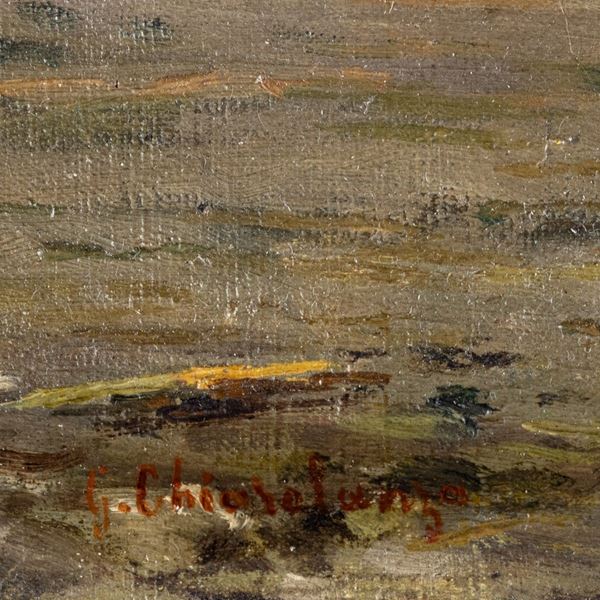 52x38 cm."Casa di campagna", olio su tela, firmato in basso a sinistra