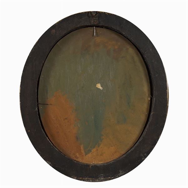 34x27 cm."Angelo annunciante", olio su tavola, entro cornice