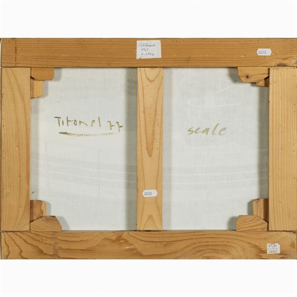 39,5x52 cm."Scale", 1977, tecnica mista su tela, firmata, datata e titolata sul retro, entro cornice