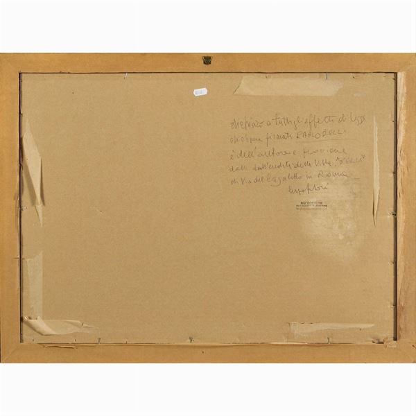 50x70 cm."Senza titolo", tecnica mista su cartoncino, firmata in basso a destra, entro cornice