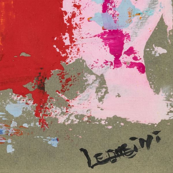 51x72 cm."Senza titolo", 1959, due tecniche miste unite su cartoncino, una firmata in basso a destra, entro cornice