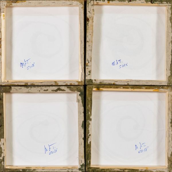 30x30 cm."Senza titolo", 2018, quattro tecniche miste su tela, firmate e datate sul retro