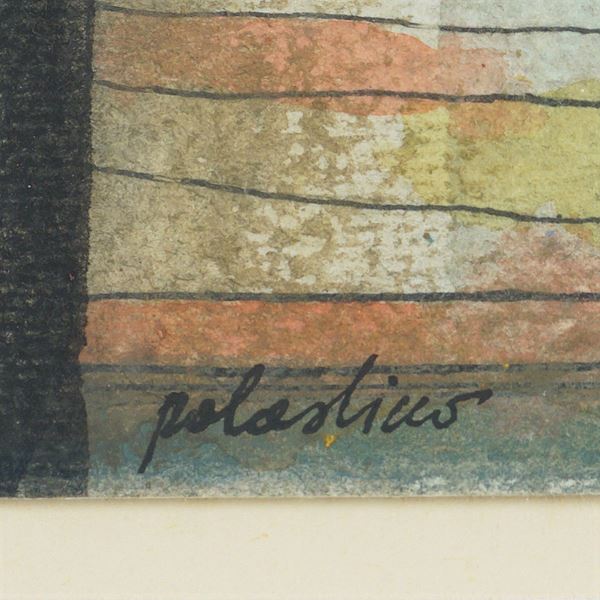 17,5x12 cm."Senza titolo", tecnica mista su carta, firmata in basso al centro, entro cornice