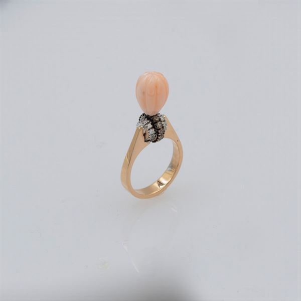 peso 9 gr.in corallo rosa e diamanti fancy taglio brillante ct 0,55 circa, misura 13