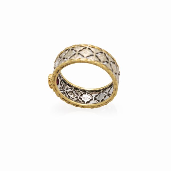 Buccellati anello a fascia in oro giallo e bianco 18kt