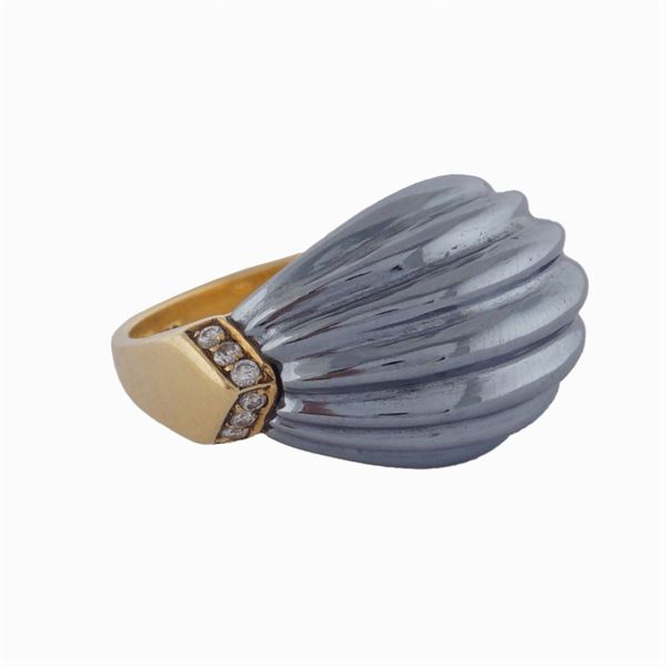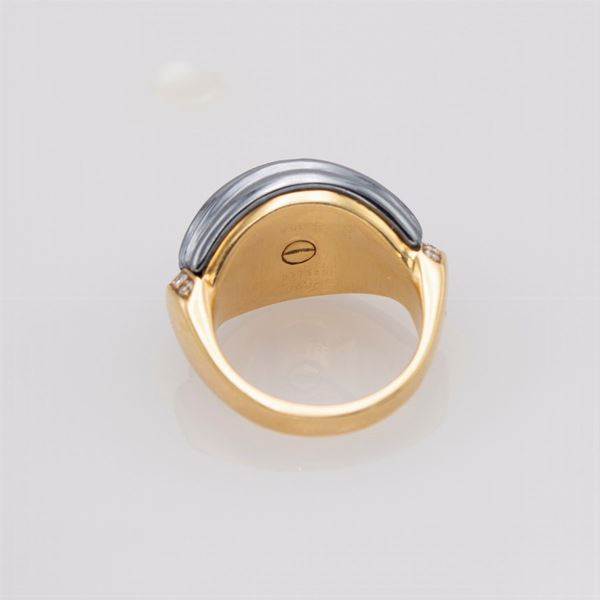 Cartier, anello bombé in oro giallo 18kt ed ematite