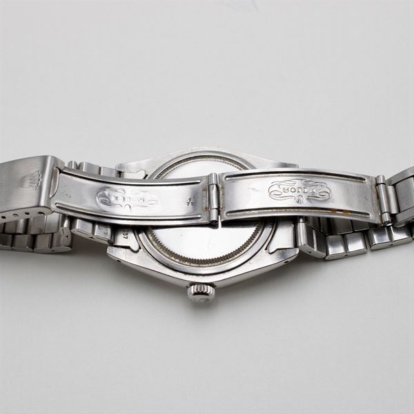 in acciaio, ref. 6426, cassa 35 mm. quadrante blu con indici, movimento meccanico a carica manuale, calibro 1225, bracciale oyster in acciaio, cassa quadrante e movimento firmati