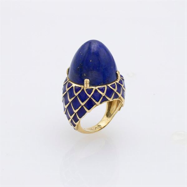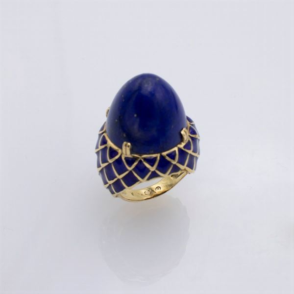 peso 26 gr.in oro giallo 18kt lapislazzulo e smalto blu, lievi difetti, misura 14