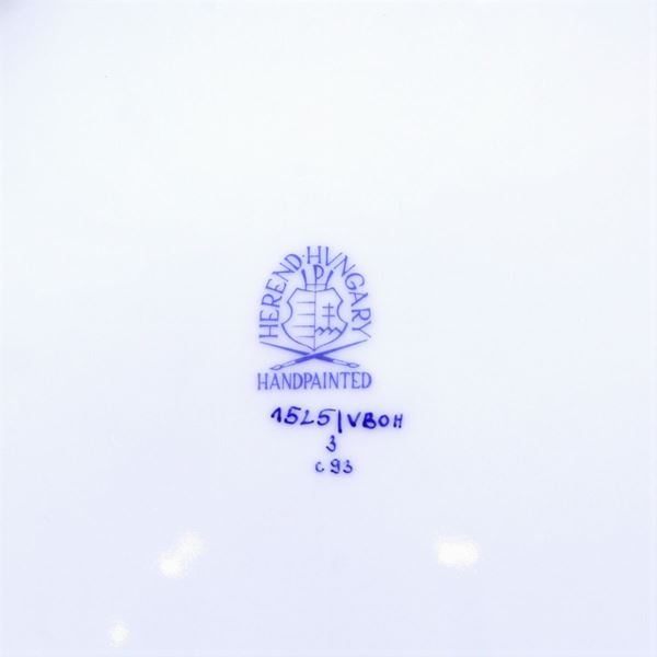 decoro "Fortuna ruggine", in porcellana monocroma su fondo bianco, bordo Ozier e profilo dorato, marchio della produzione.