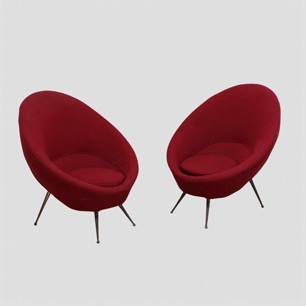 75x70x75 cm.coppia di poltrone in ottone e tessuto imbottito, lievi usure