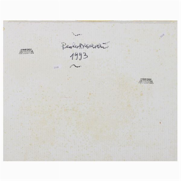 46x66 cm."Senza titolo", 1993, tecnica mista e collage su cartoncino, firmata e datata sul retro