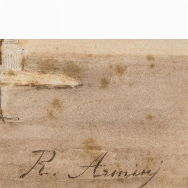26x39,5 cm."Scalinata di Trinità dei Monti - Roma", acquerello su carta, entro cornice