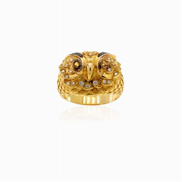 peso 12 gr.occhi con zaffiri gialli, diamanti taglio brillante ct 0,27 circa e diamanti neri, misura 23