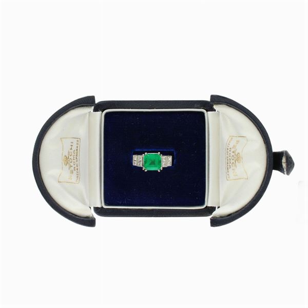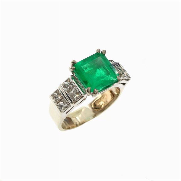 Anello in oro a due colori 18kt con smeraldo naturale columbiano