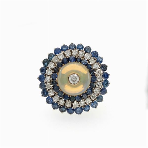 Anello in oro bianco 18kt opale arlecchino zaffiri e diamanti
