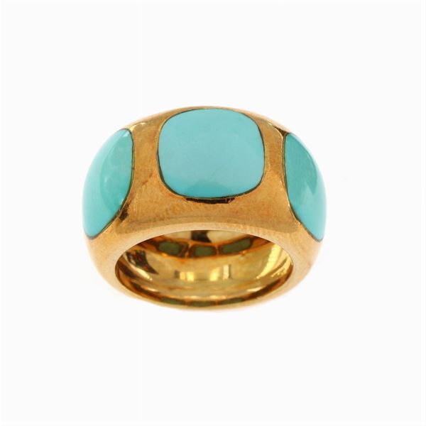 Anello in oro giallo 18kt tre turchesi naturali