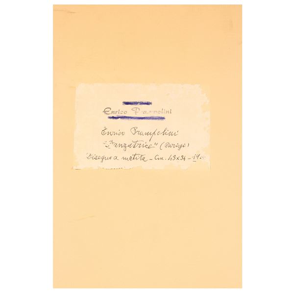 41x33 cm."Danzatrice (Parigi)", 1925, matita su carta, etichetta firmata, datata e titolata sul retro