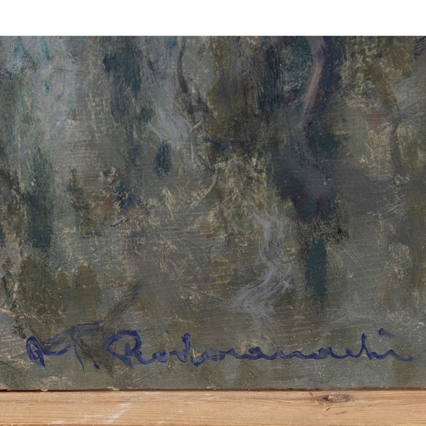 52,5x73,5 cm."Paesaggio", olio su tavola, firmato in basso a destra