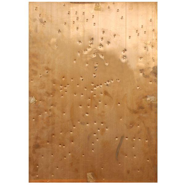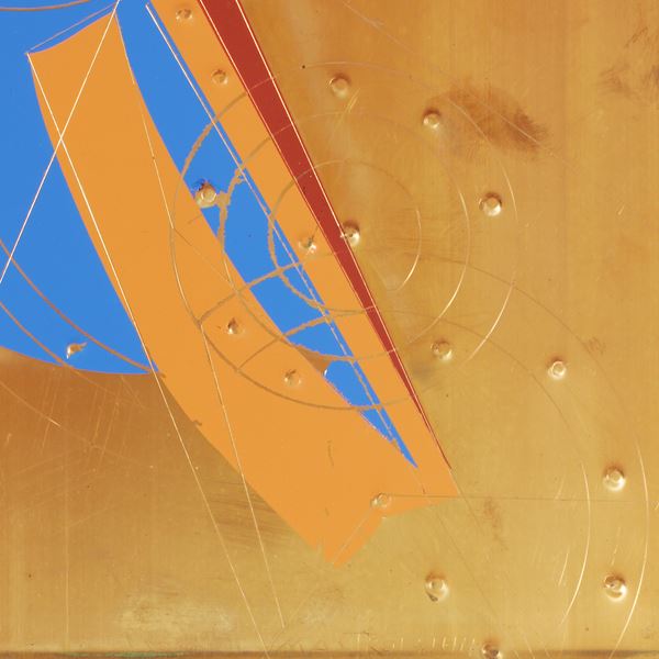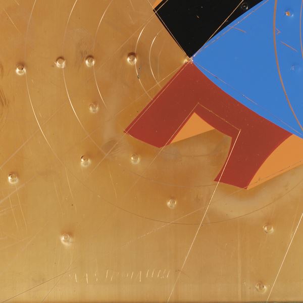 50x35,5 cm."Composizione", 1970 circa, tecnica mista su lastra di rame, firmata, entro cornice