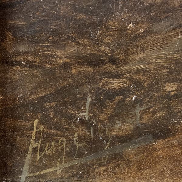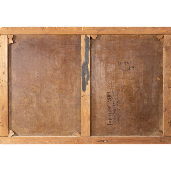 98x143 cm."Strada del Cairo", olio su tela, firmato in basso a sinistra, entro cornice