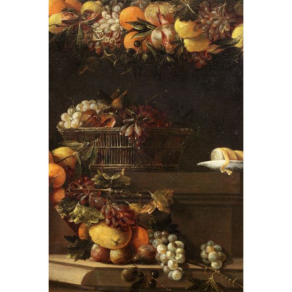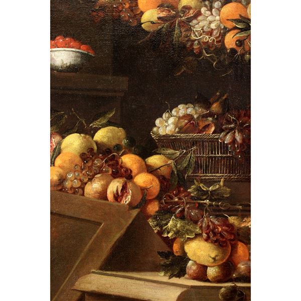 89x119 cm."Natura morta con frutta", olio su tela, entro cornice