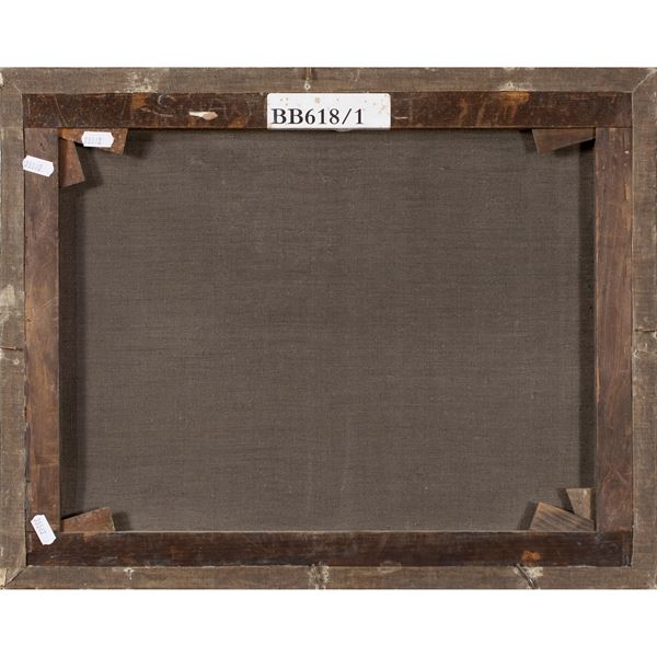 43x53 cm."L'incontro", 1864, olio su tela, firmato e datato in basso a sinistra, entro cornice