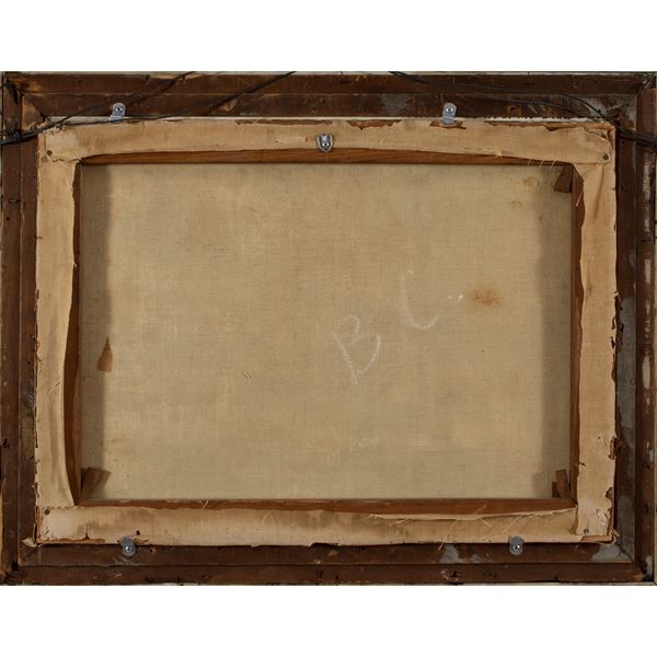 44x61 cm."Capriccio architettonico con figure", olio su tela, entro cornice