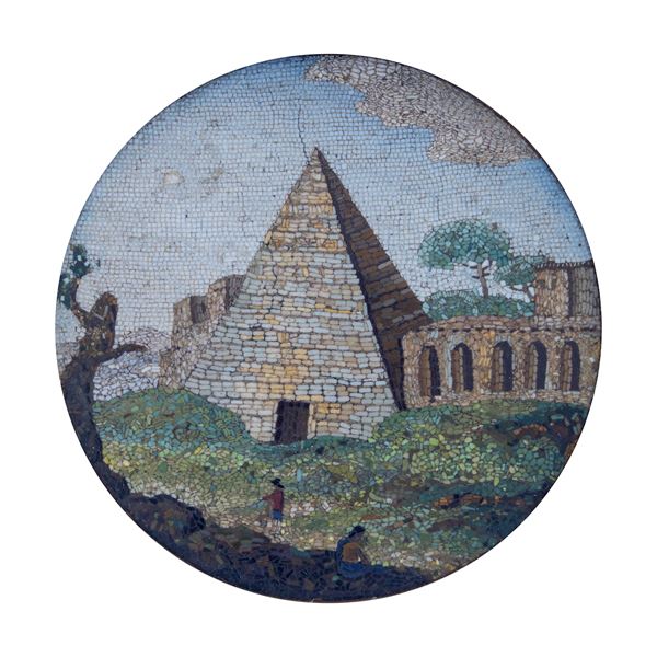 raffigurante "Piramide di Caio Cestio", entro cornice in metallo dorato