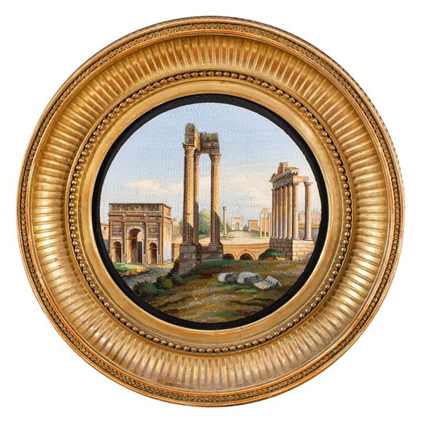 d. 25,5 cm.raffigurante "Il Foro Romano", entro cornice in legno dorato