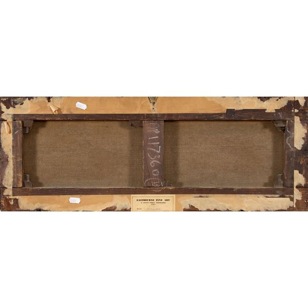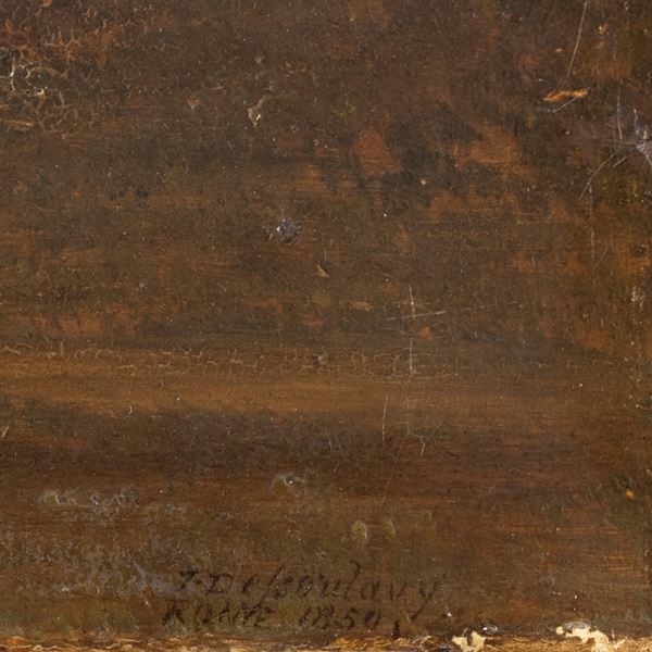 26x71,5 cm."Veduta dell'acquedotto romano", 1850, olio su tela, firmato e datato in basso a destra, entro cornice
