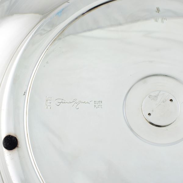 bowl in metallo argentato, firmata, marchio della produzione, lievi usure