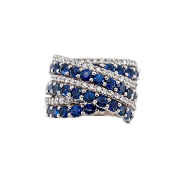 zaffiri tondi ct 3,80 circa e diamanti taglio brillante ct 1,50 circa, misura 15