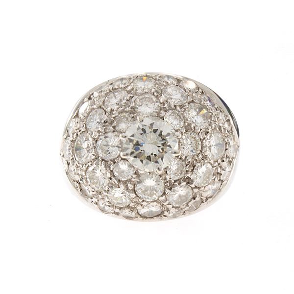 peso 8 gr.taglio brillante ct 0,50 circa contornato da diamanti taglio brillante ct 1,20 circa, misura 12