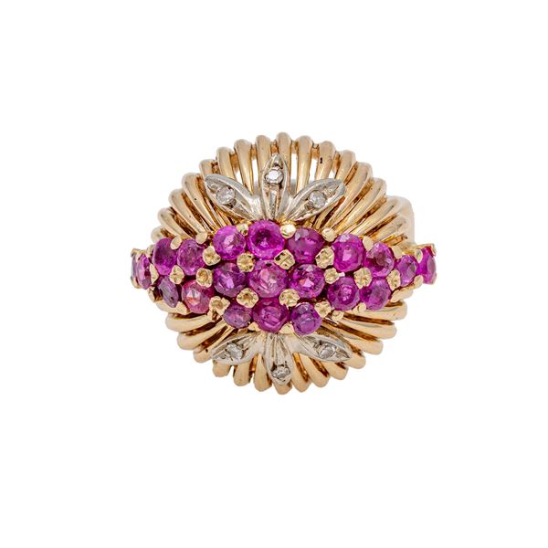Anello bombé in oro giallo 18kt rubini e diamanti