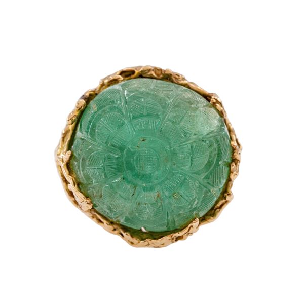 peso 44 gr.taglio cabochon inciso a motivo floreale, diametro 2,1 cm. misura 16