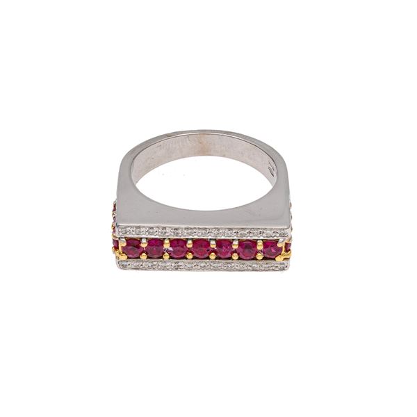 Anello in oro bianco 18kt rubini e diamanti