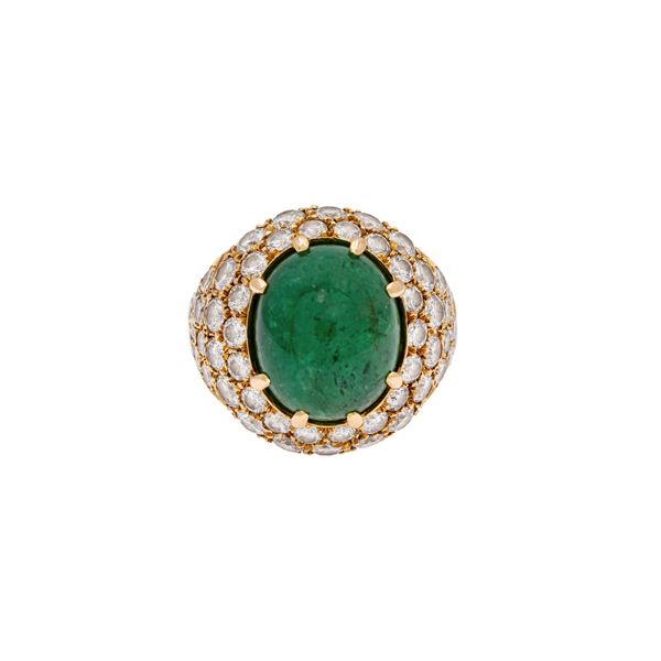 peso 10 gr.smeraldo taglio cabochon ct 6 circa, diamanti taglio brillante ct 1,60 circa, misura 9 con molla interna