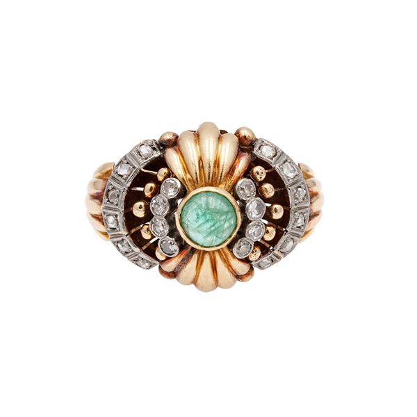 peso 7 gr.smeraldo taglio cabochon e diamanti taglio brillante antico, misura 14