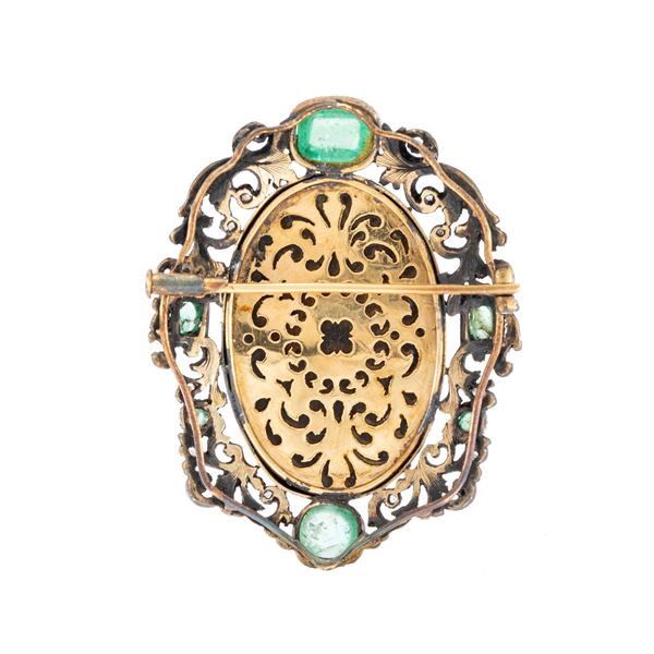 peso 18 gr.taglio cabochon, centrata da miniatura raffigurante ritratto femminile firmata Ferrante, dimensioni 5x3,8, cm.