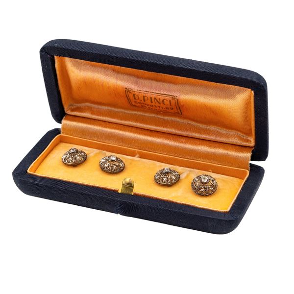 Antichi gemellli in oro bianco 18kt e rose coroné
