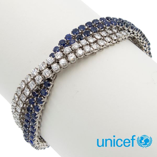 peso 33 gr.diamanti taglio brillante ct 4 circa disposti a gradazione e zaffiri tondi ct 3,80 circa, lunghezza 18 cm.