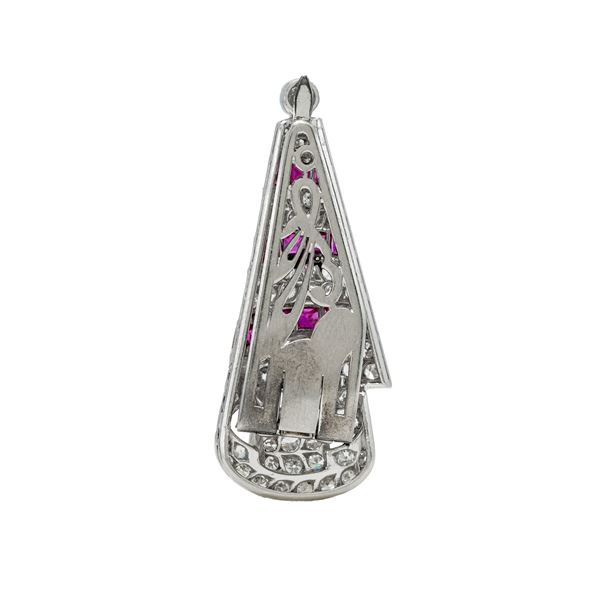 peso 16 gr.diamanti taglio brillante antico ct 7 circa alternati da rubini taglio carré incastonatura invisibile, dimensioni 5,5x1,9 cm.