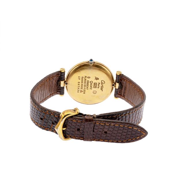 in argento placcato oro, ref. 17 097934, cassa tonda 30 mm. quadrante duodial con numeri romani, vetro zaffiro, corona con zaffiro, movimento al quarzo, completo di cinturino con fibbia placcata oro, cassa, quadrante e movimento firmati